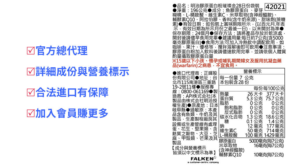 ・100%使用低分子化且人體容易吸收的魚膠原蛋白。